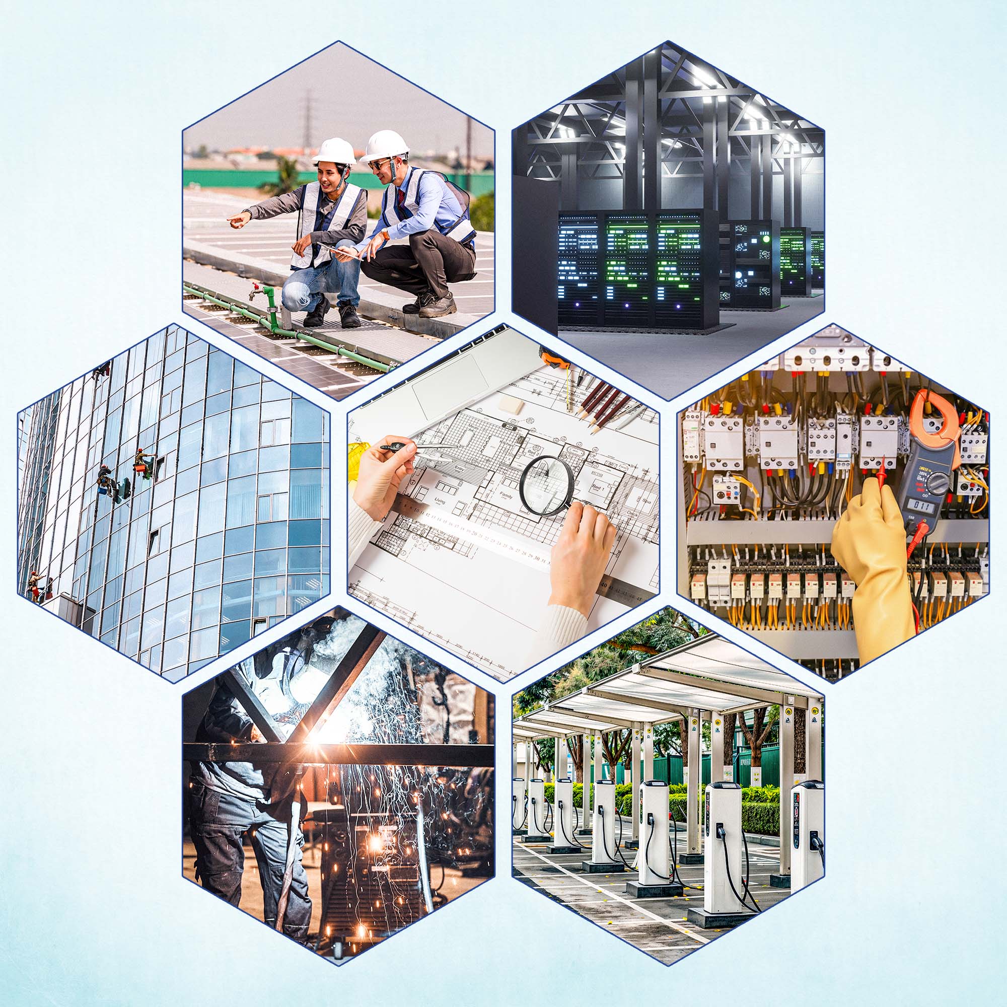 Planning, design, installation, testing, and commissioning of AC/DC EV charging infrastructure, including load assessment, power distribution, protection systems, and grid compliance.